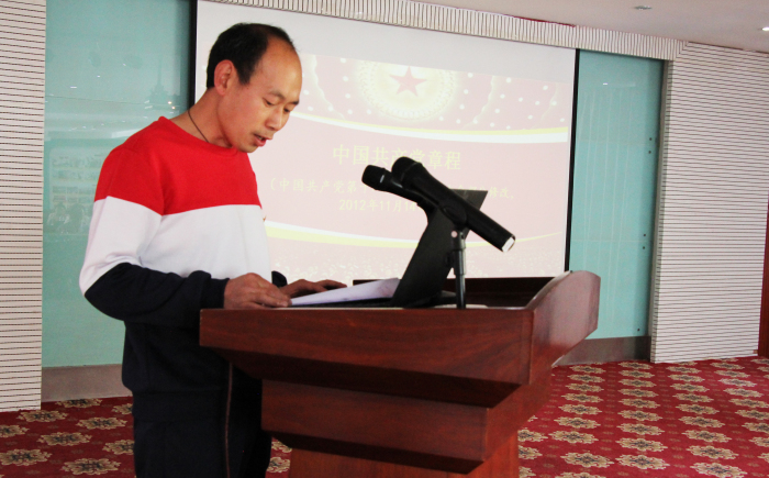 之后,敖德秀同志又帶領(lǐng)全體黨員、預(yù)備黨員、積極分子逐字逐句溫習(xí)黨章和黨誓,并舉行了做合格共產(chǎn)黨員,亮證掛牌活動(dòng)儀式。