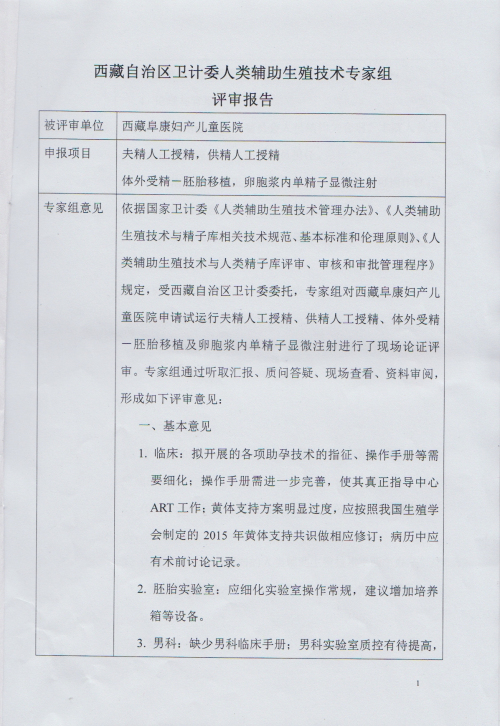 附件:西藏自治區(qū)衛(wèi)計(jì)委人類輔助生殖技術(shù)專家組評(píng)審報(bào)告
