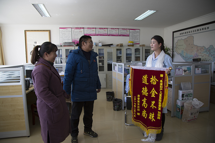 在經(jīng)過(guò)自己的努力還是沒(méi)能聯(lián)系上失主,劉明雨決定:將錢(qián)包及里面的財(cái)物毫厘不差地上交到醫(yī)院辦公室。所幸,2月10日,失主次白夫婦找到了阜康婦產(chǎn)兒童醫(yī)院辦公室,經(jīng)核實(shí)后順利取回了裝有6000元錢(qián)的錢(qián)包。失主由衷感謝劉明雨拾金不昧的高尚品德,于2月10日下午,次白夫婦特意制作印有“拾金不昧,道德高尚”八個(gè)大字的鮮紅錦旗送到醫(yī)院,并親手交到劉明雨同志手中,以表達(dá)他們的感激之情!